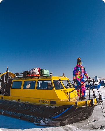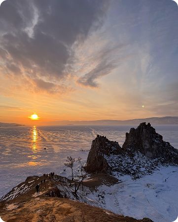 Также нас ждёт обед прямо на льду Байкала с горячей ухой, вкусными пирогами, разносолами и крепкой Байкальской настойкой!